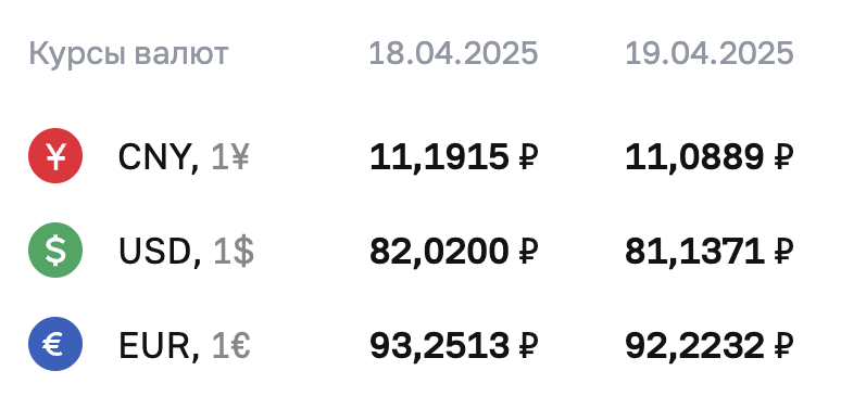 Курс валюты по Центробанку, на 21 апреля